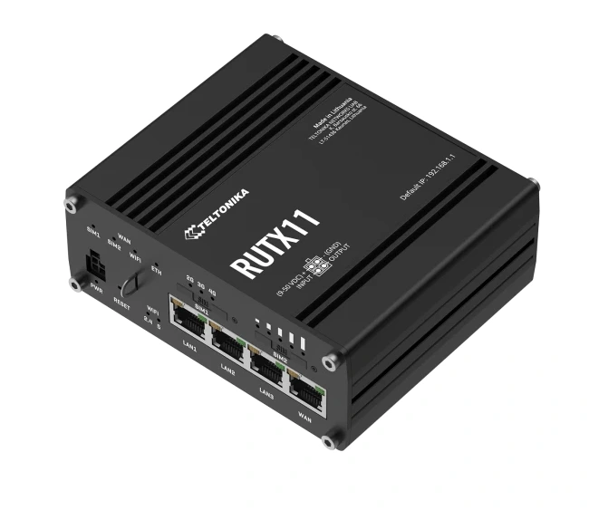 - RutOS support with VPN (OpenVPN/IPsec/WireGuard), firewall, SMS control, MQTT, SNMP & RMS