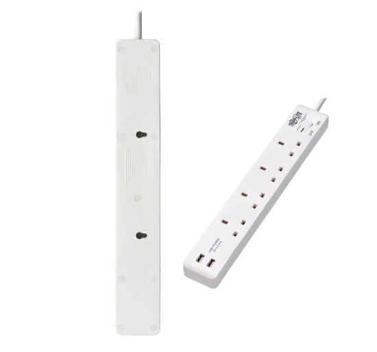- Rear keyhole slots enable mounting to desk or workbench for easy access to outlets