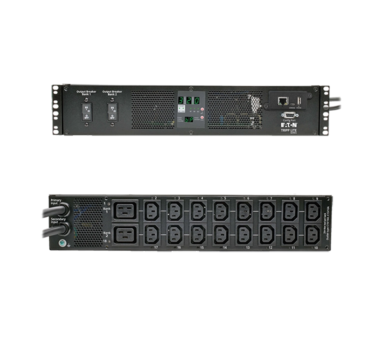 - 14 total outlets—4 C13 in front, 8 C13 and 2 C19 in rear