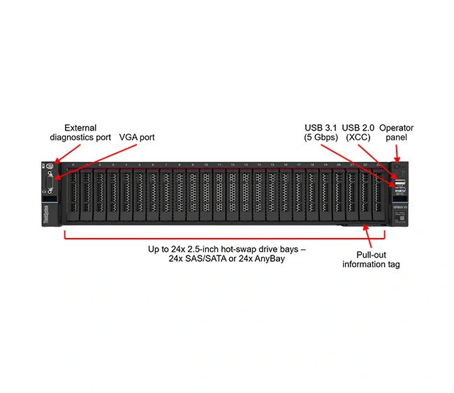 - Storage: Up to 24x 2.5″ drives (SAS/SATA/NVMe)