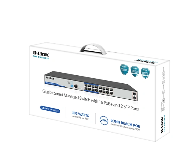 D-Link 18-Port Gigabit Smart Managed PoE+ Switch (DGS-F1210-18PS-E)