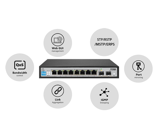 D-Link 8 Port PoE Gigabit Smart Managed Switch + 2 SFP (DGS-F1100-10PS-E)