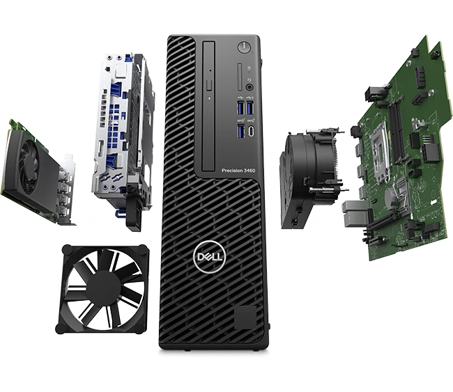 Dell Precision 3460 SFF workstation with Intel Core i9-14900, 64 GB DDR5, 5 TB NVMe SSD, NVIDIA RTX A400 4 GB, multiple DisplayPort outputs, USB-C Gen2×2, and 3-year warranty — compact yet powerful system for professional CAD, editing, and visualization workloads.
