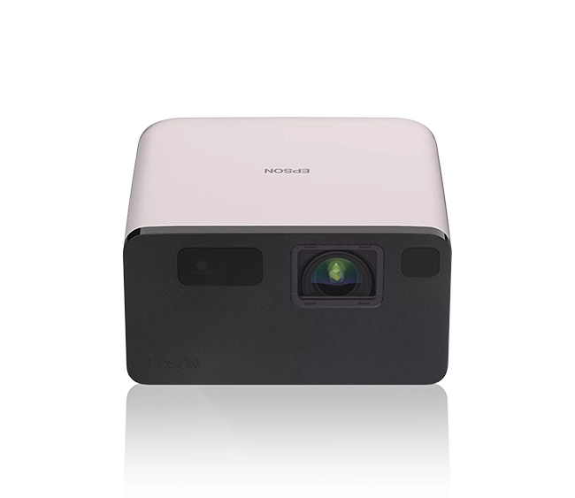 Epson EF-21R Full HD smart projector in red with Full HD 1080p, 3000 lumens, 3LCD technology, Android TV, Chromecast, and Bluetooth audio. Stylish portable design for home cinema, gaming, and streaming up to 150 inches.