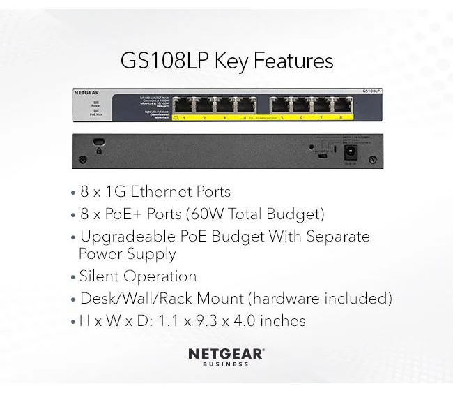 September 11, 2025Netgear GS108LP-100EUS 8-Port PoE+ Gigabit Unmanaged Switch