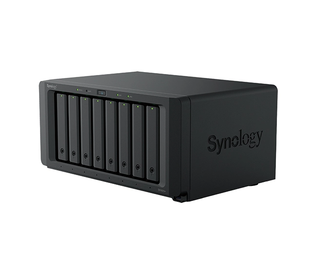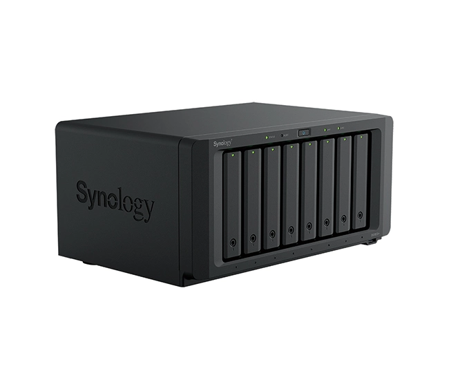 Synology DiskStation DS1825+ 8-Bay NAS with AMD Ryzen V1500B CPU, 8 GB DDR4 ECC RAM (expandable to 32 GB), quad Gigabit LAN, PCIe expansion, and up to 18 drives. Built for businesses needing reliable, scalable storage.