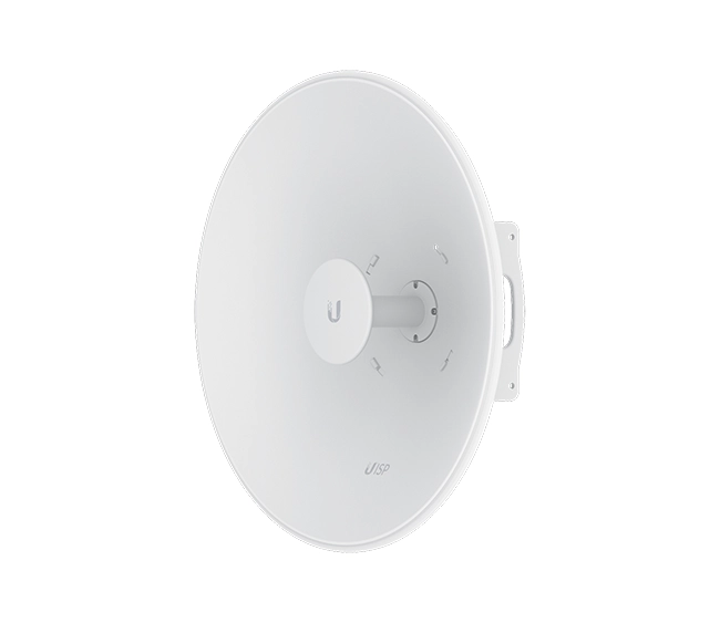 The Ubiquiti UISP Dish is a rugged 30 dBi 5–6.9 GHz dish antenna with narrow beamwidth, precision mount, and radio compatibility—optimised for long-range PtP wireless backhaul over 30 km.