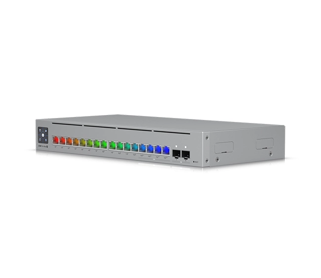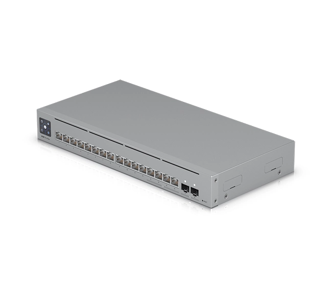 - PoE version suits deployments with PoE devices like UniFi access points, VoIP phones, or cameras, offering flexible power distribution on 12 PoE+/4 PoE++ ports.