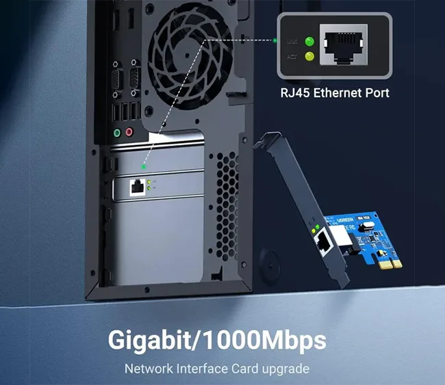 The UGREEN PCI Express Gigabit Network Adapter Card – 30771 is a high-performance wired network solution designed for desktop computers requiring stable, high-speed Ethernet connectivity. Supporting 10/100/1000Mbps auto-negotiation, it’s ideal for gaming, 4K video streaming, large file transfers, and other bandwidth-intensive applications. This PCIe adapter delivers low-latency networking and wide compatibility with various operating systems.
