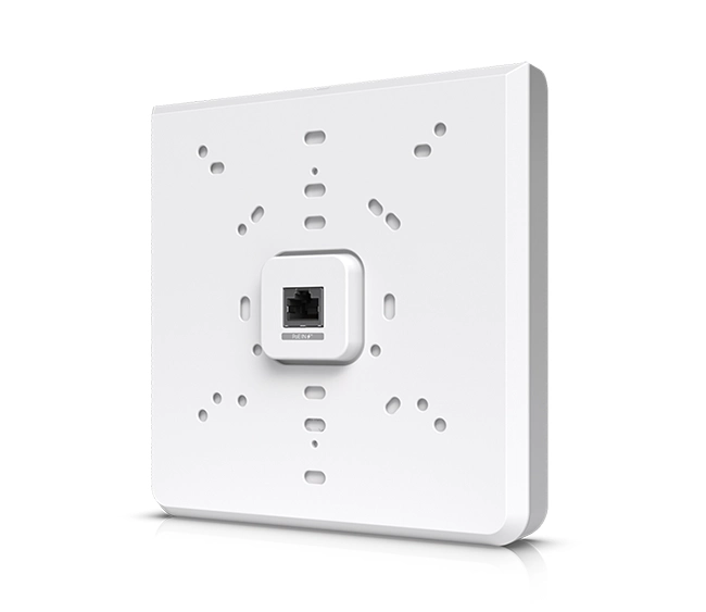 The UniFi U6 Enterprise In-Wall (U6-Enterprise-IW) is a high-performance, wall-mounted WiFi 6E access point designed for modern enterprise environments. It combines tri-band wireless capabilities with a built-in 4-port Gigabit switch, making it ideal for high-density deployments such as offices, hotels, and conference rooms.