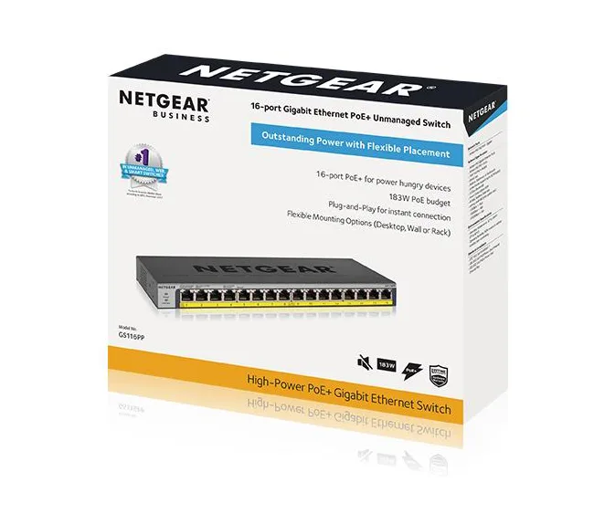 Netgear GS116PP-100EUS 16-Port Gigabit PoE+/PoE Unmanaged Switch